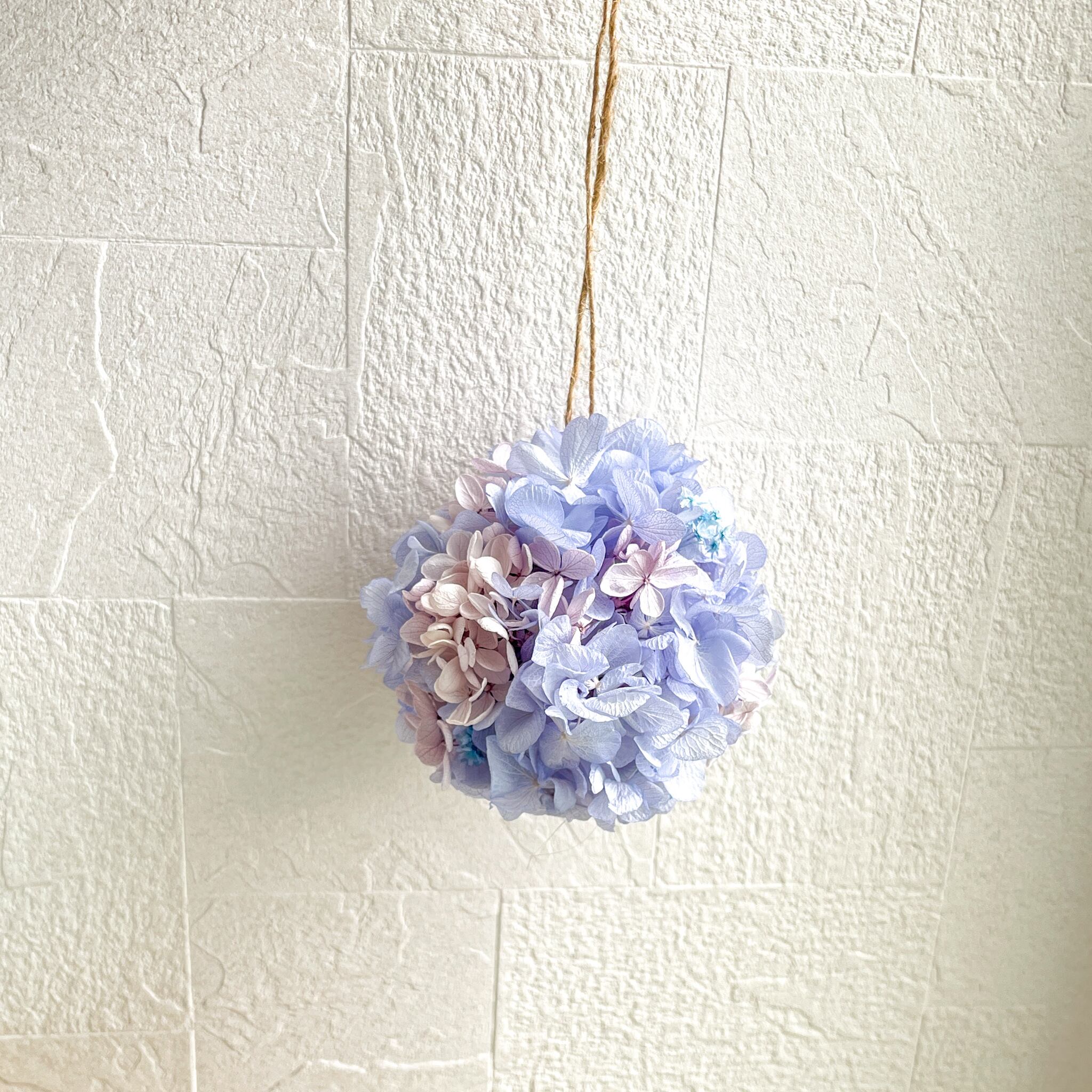 梅雨の彩りを楽しむ♪紫陽花のプリザーブドフラワーボール ブルー パープル 初夏 フライング