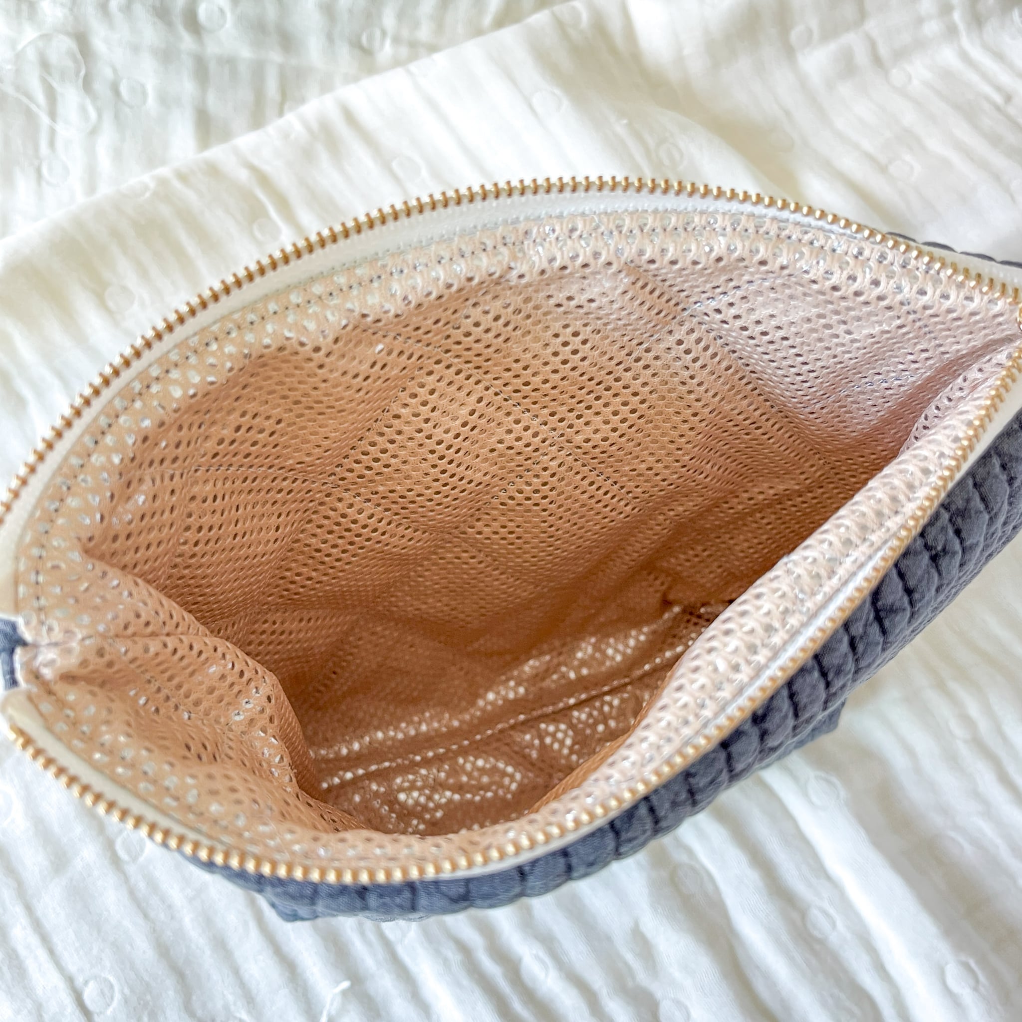 名入れ対応のヌビキルトのふんわり保冷ポーチです。