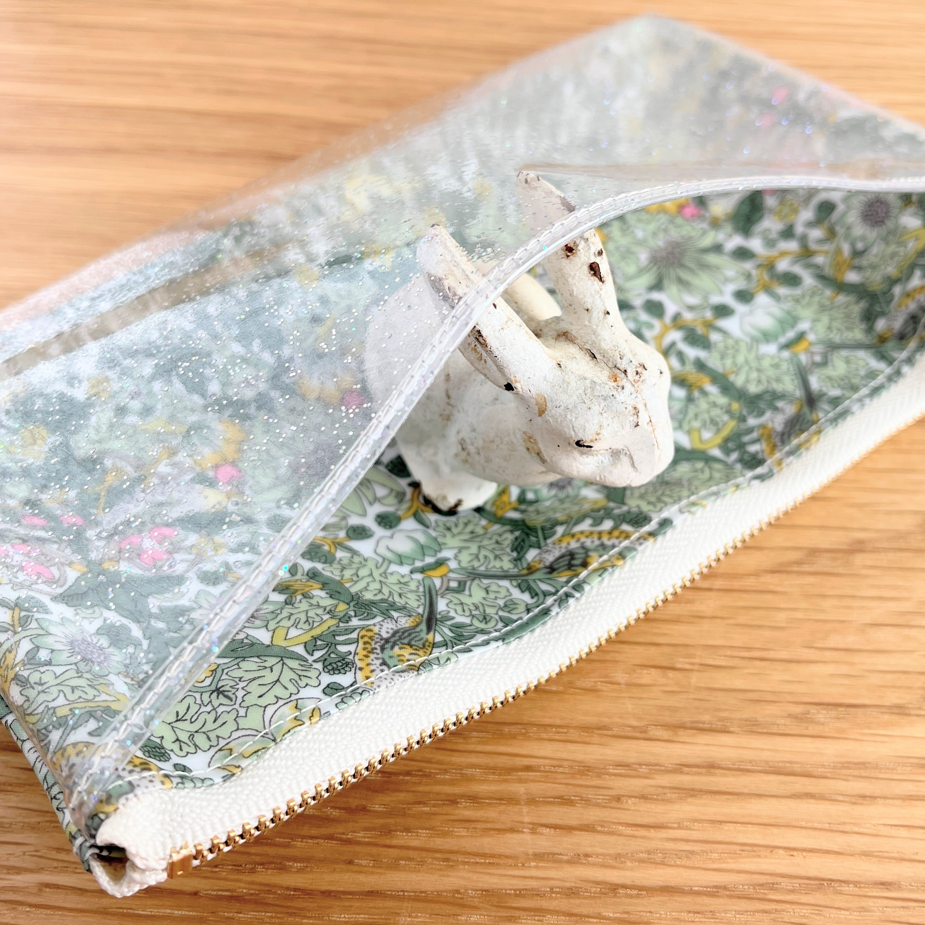 外ポケットだけにクリアなビニールを使うことで、隠したいものは隠しつつ、透け感も楽しんでいただけます。