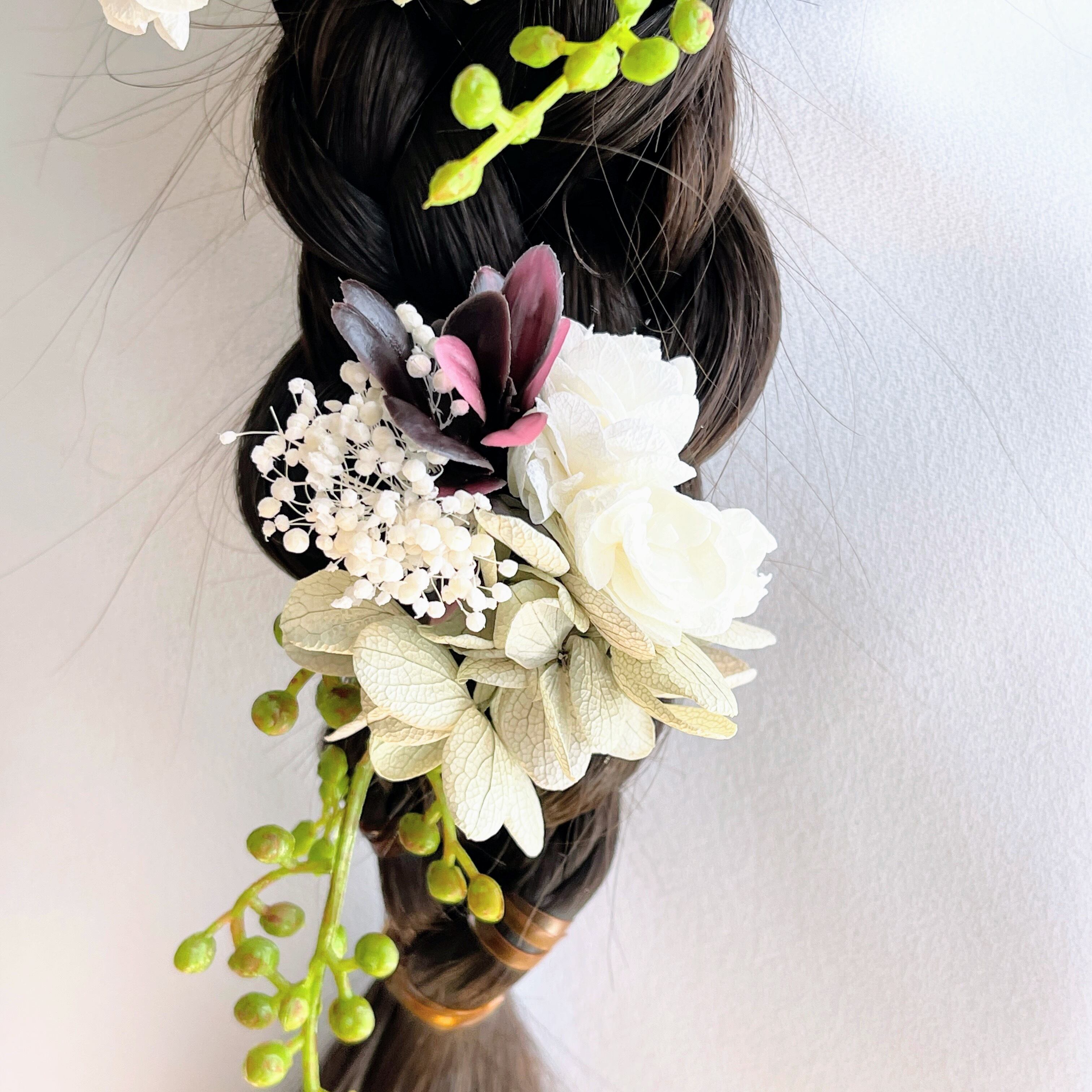髪飾り 20パーツセット ヘッドパーツ プリザーブドフラワー ホワイト ラプンツェル 卒園式 卒業式 入学式 結婚式