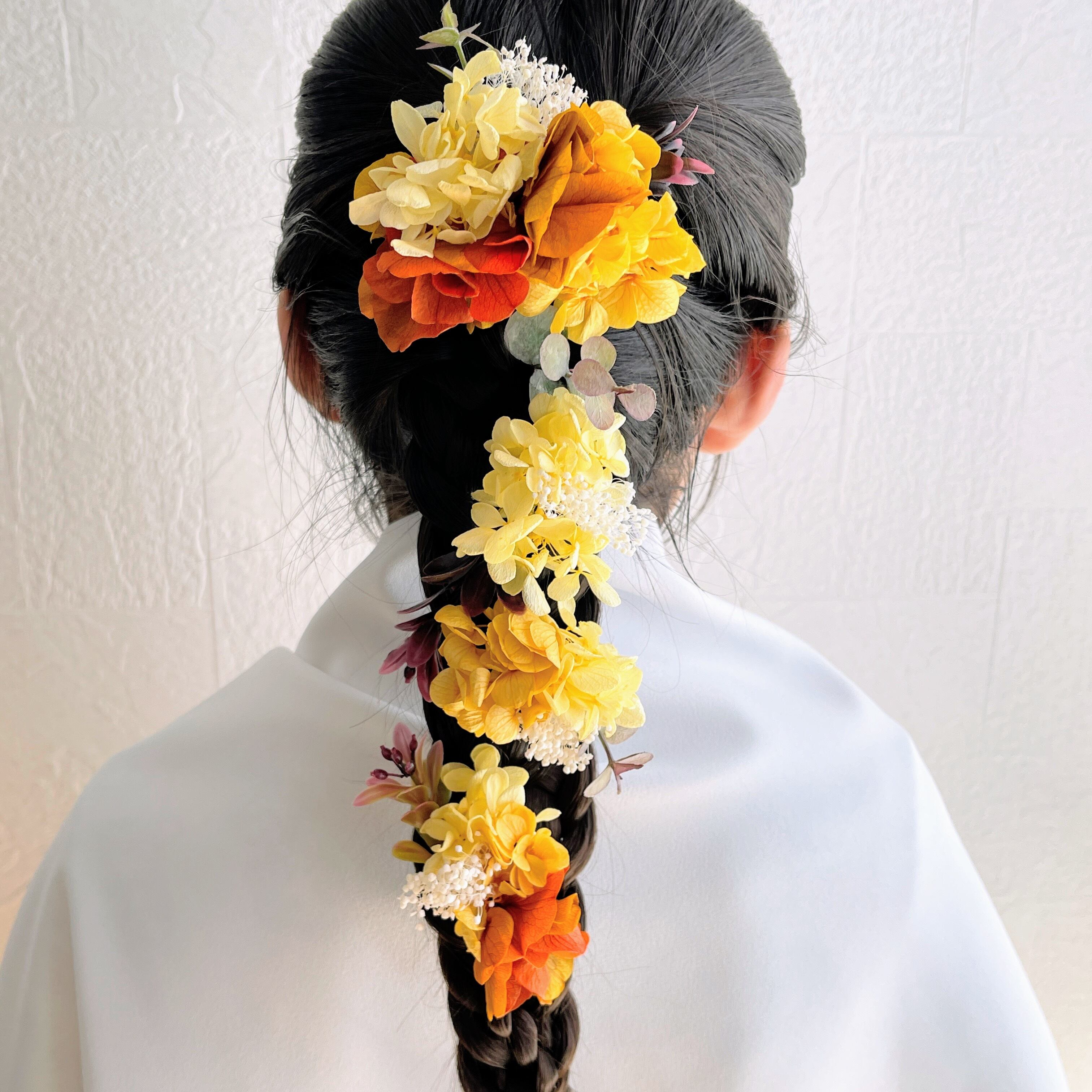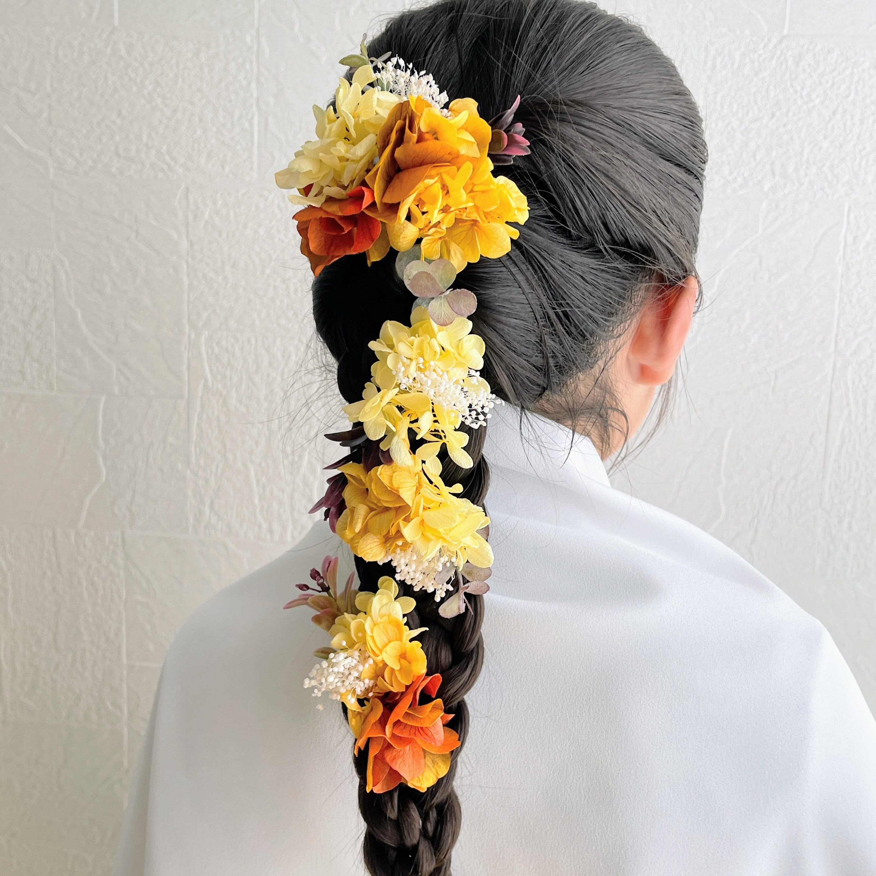 髪飾り 20パーツセット ヘッドパーツ プリザーブドフラワー オレンジ イエロー ラプンツェル 卒園式 卒業式 入学式 結婚式