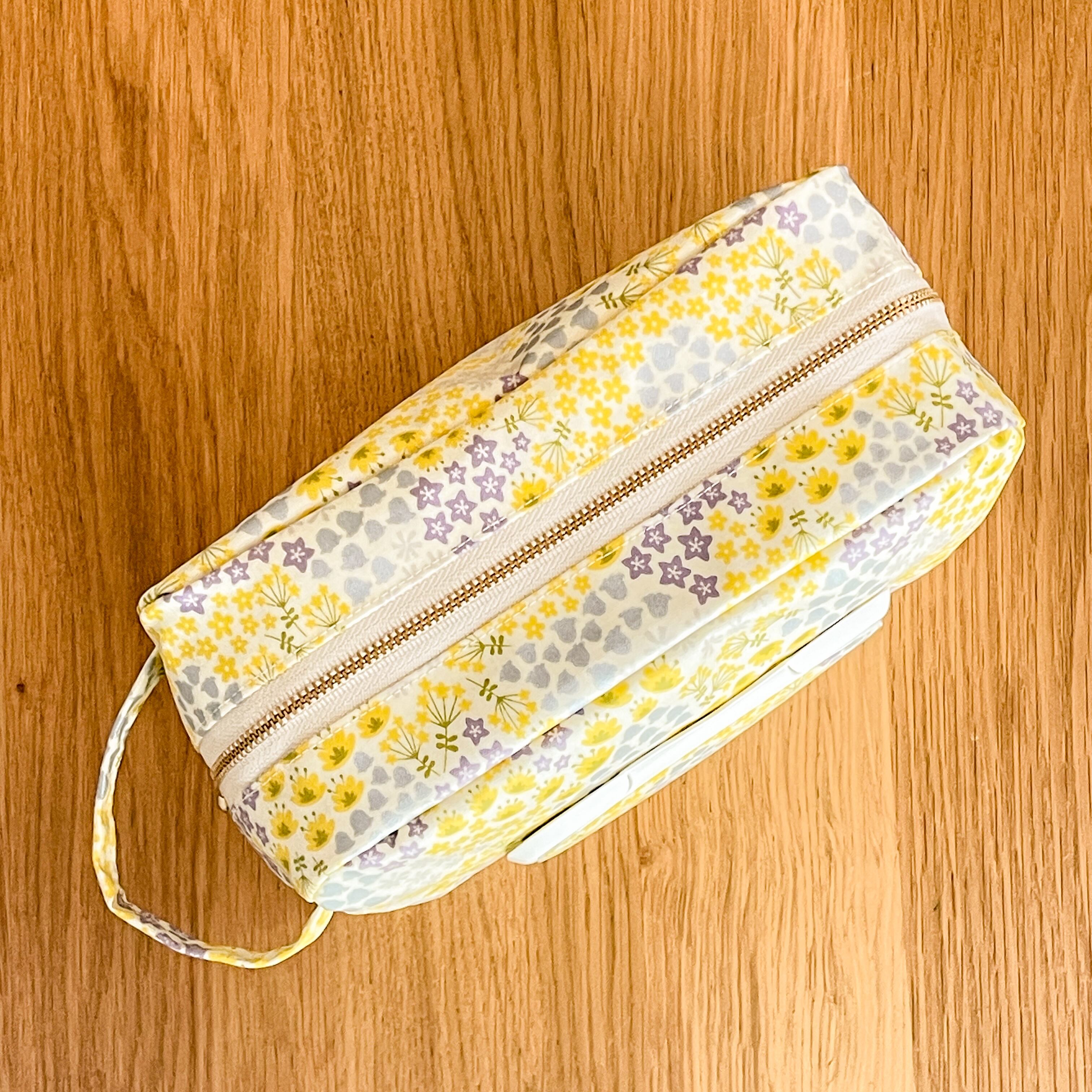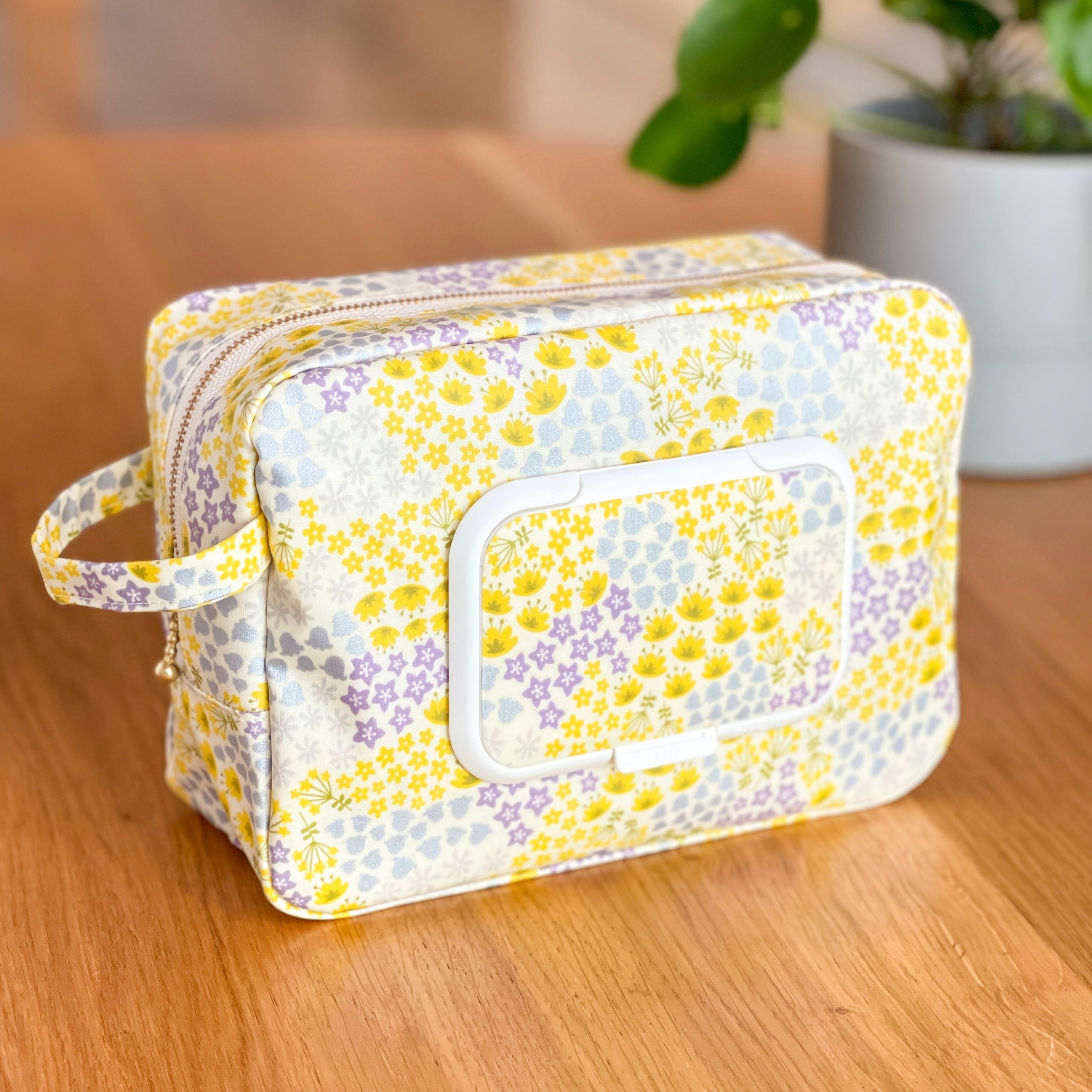 フラワーベッド ビタット付きラミネートのおむつポーチ イエロー パープル デコレクションズ オムツポーチ お散歩バッグ おしりふき