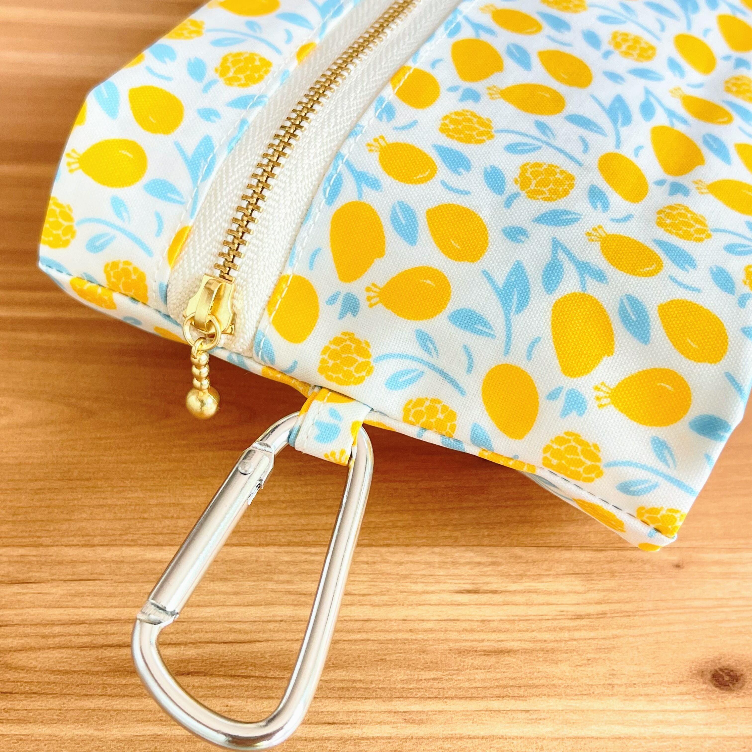 カラビナ付きなので、ポーチやバッグに付けて携帯できます。