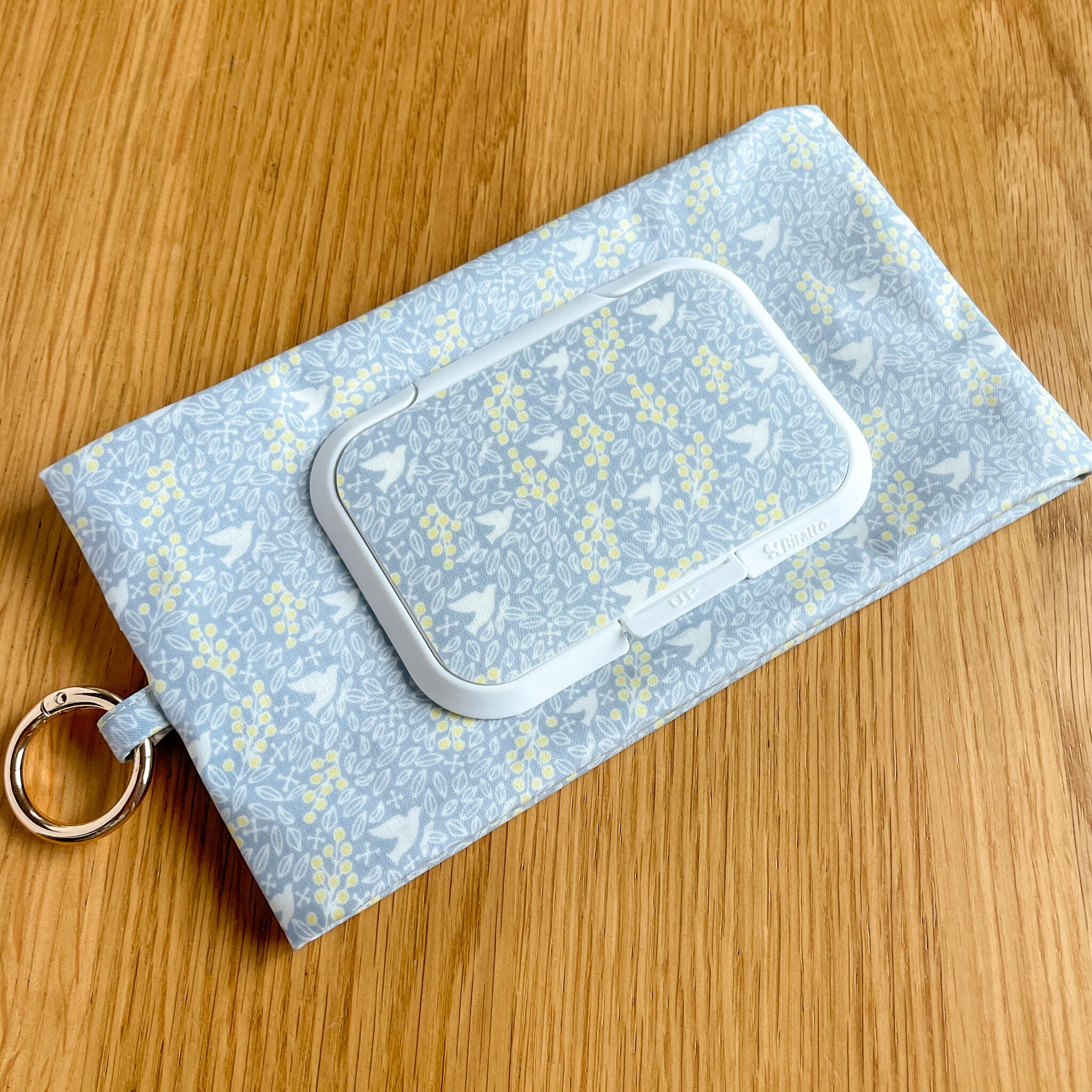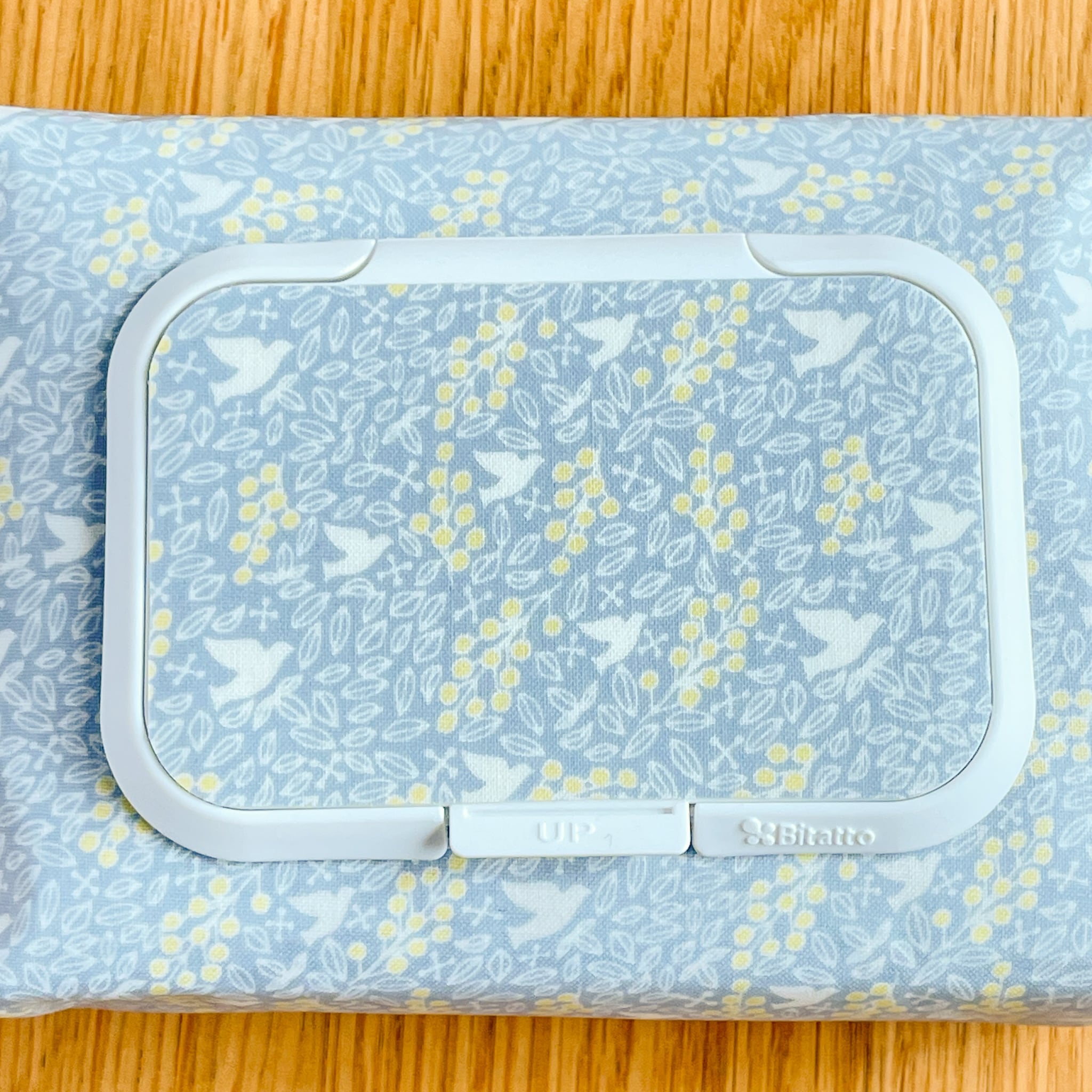 ウインターフォレスト ラミネートのおしりふきポーチ バード 水色 デコレクションズ マスクケース マスクポーチ ウェットシート ウェットティッシュ 鳥 ミモザ マスクストッカー