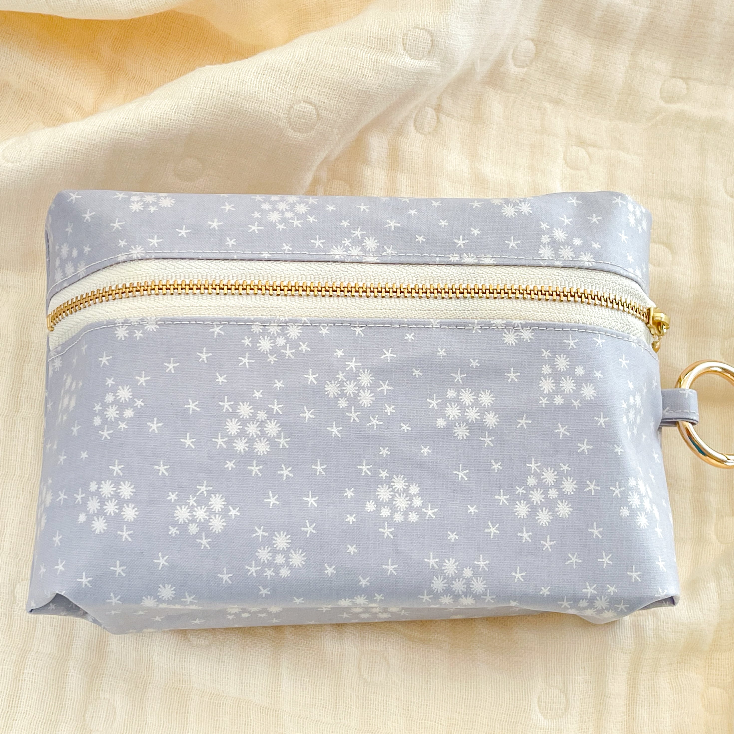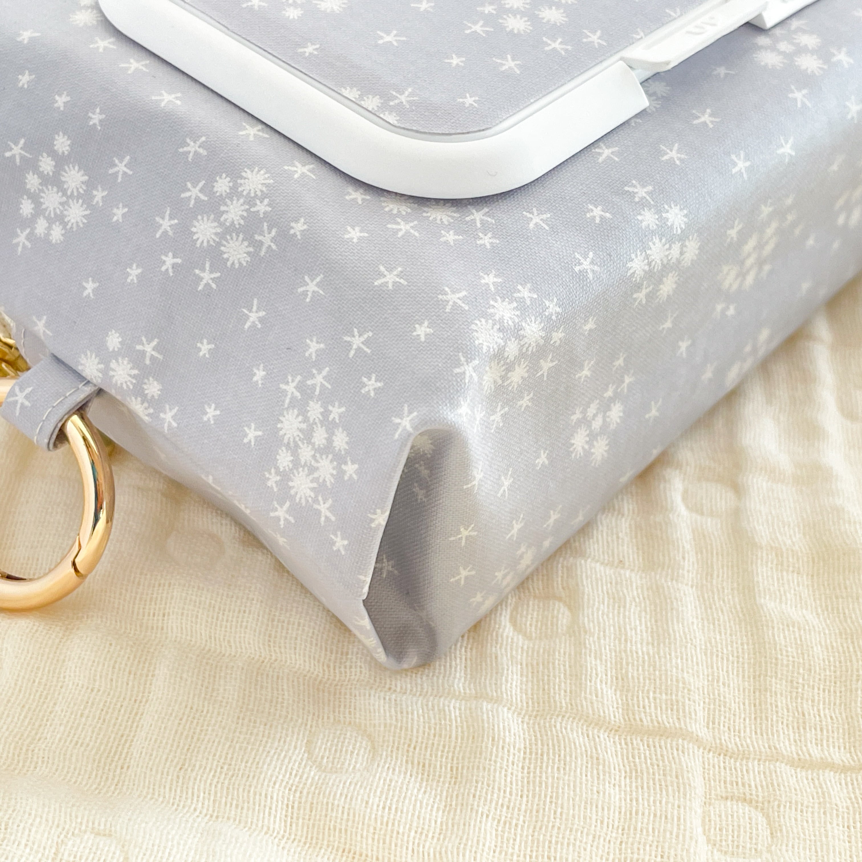 贈ってよかった!と言われる出産祝い*軽量!ラミネートのおしりふきポーチ グリッター グレー 除菌シート ウェットティッシュポーチ ラベンダーグレー モノトーン