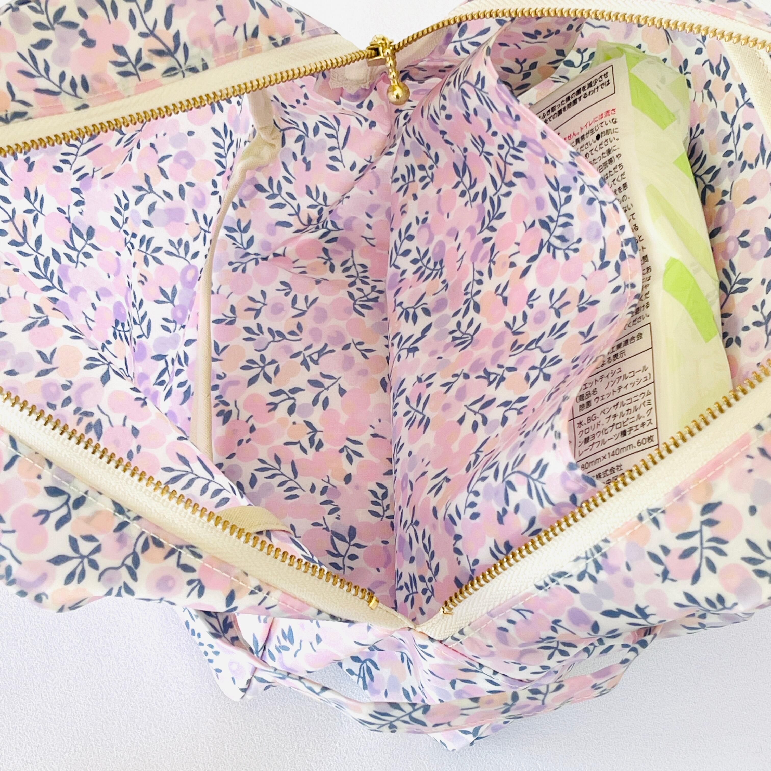 ウィルトシャー リバティ ピンク ビタット付きラミネートのおむつポーチ オムツポーチ お散歩バッグ おしりふき