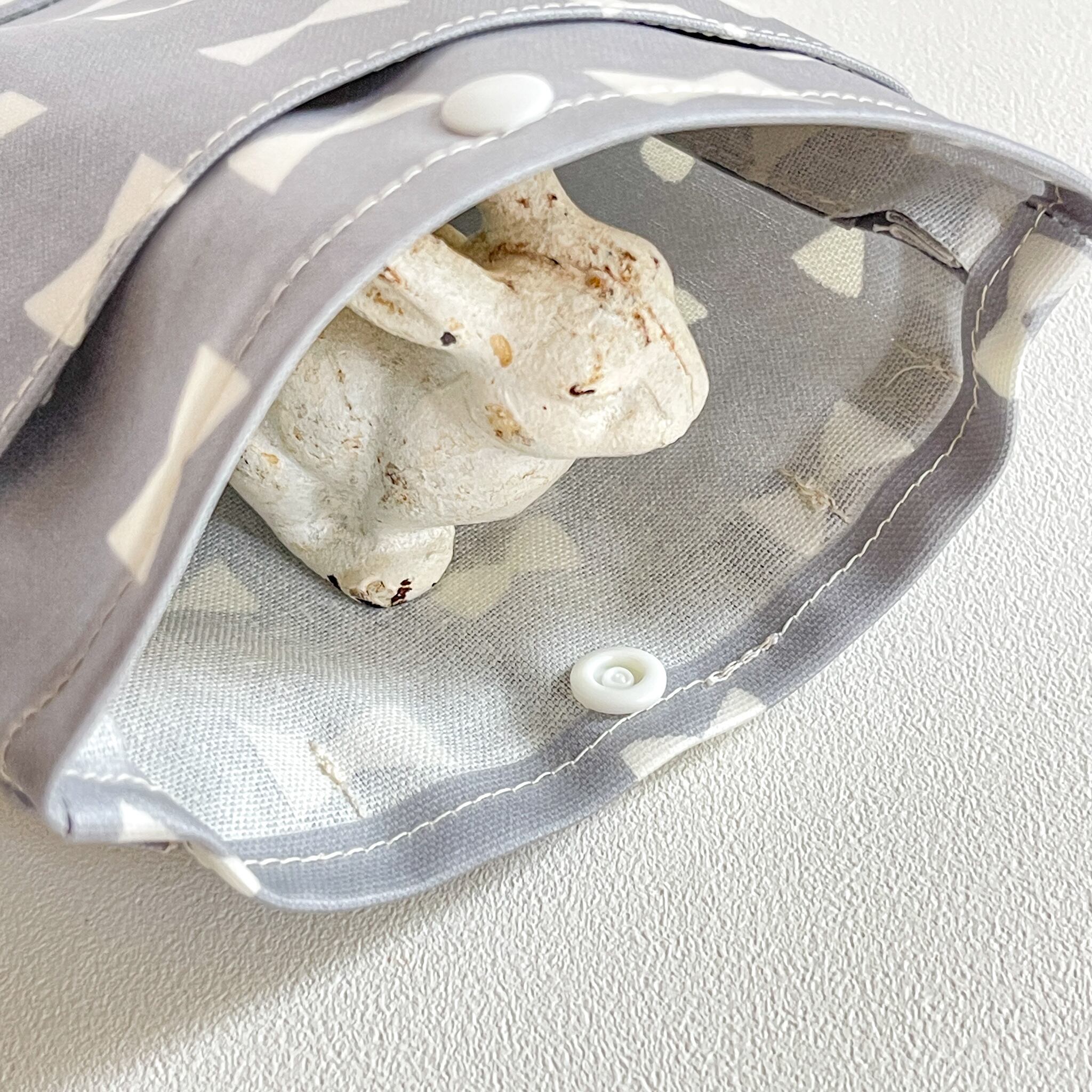 \フタ無しで便利/ラミネートの移動ポケット リボン ピンク 水色 ブルー ベージュ グレー