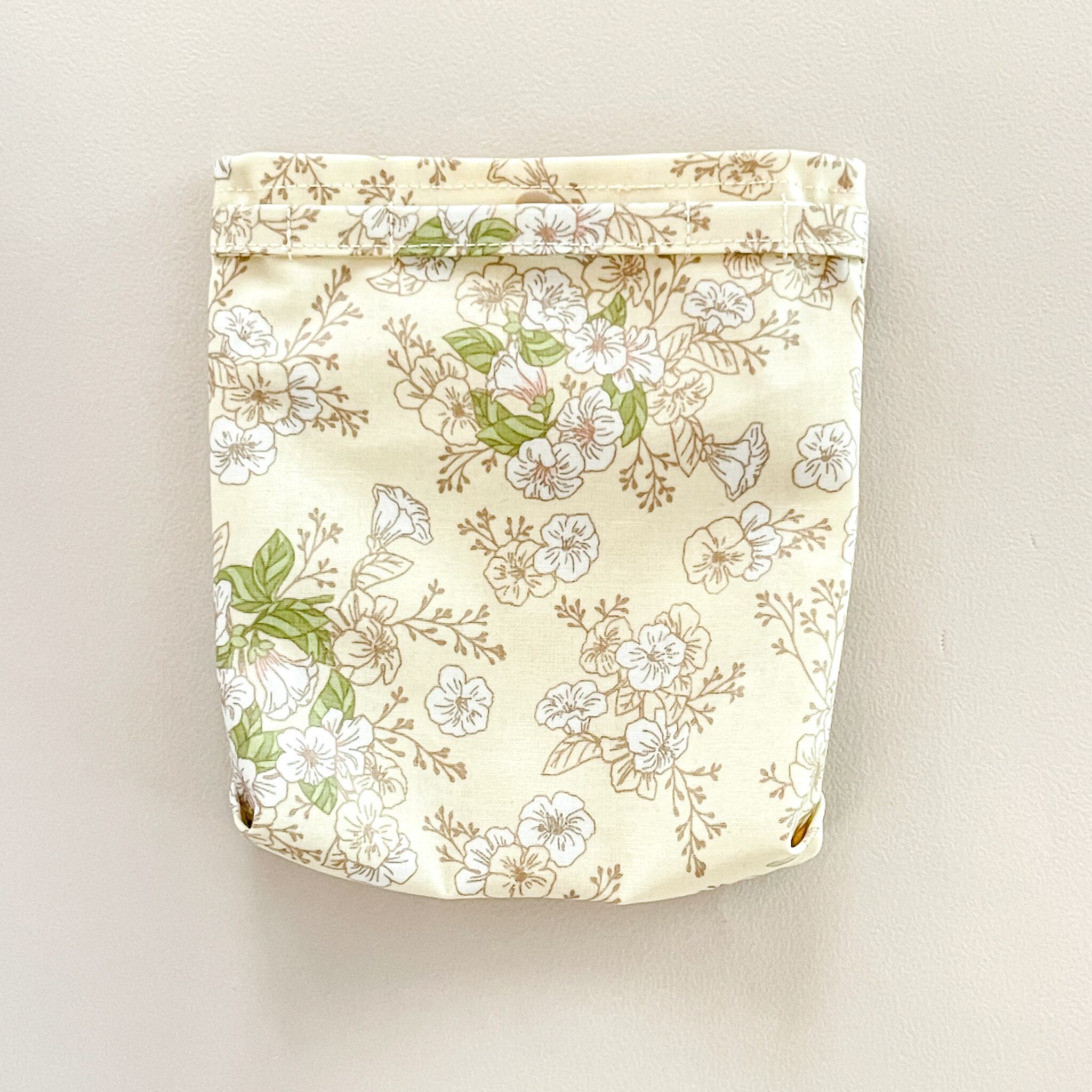 \フタ無しで便利/ラミネートの移動ポケット ホワイトガーデン リバティ アイボリー ベージュ イエロー 花