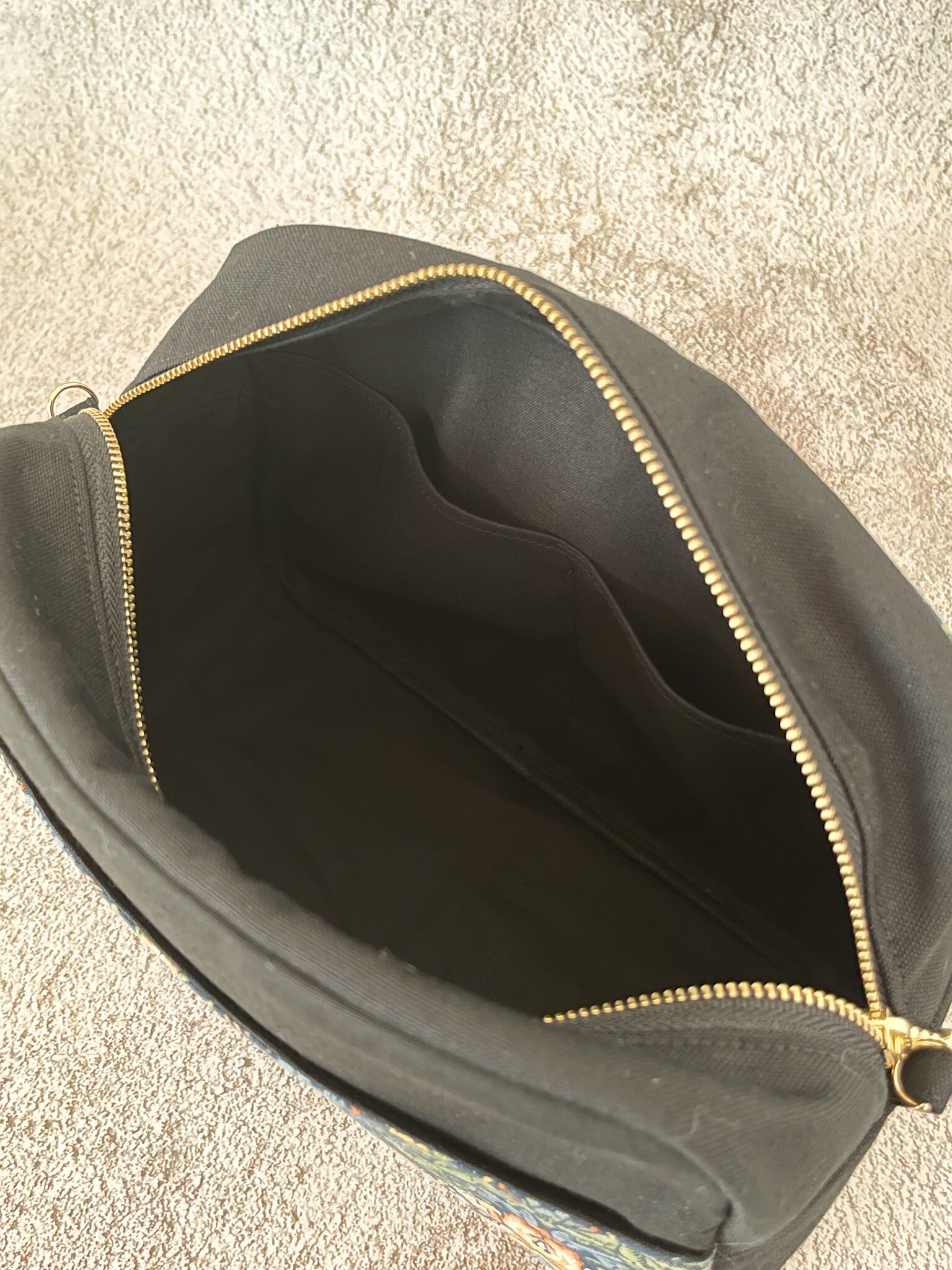 中には厚みのあるフェルト調の接着芯をはさんでいますので、とてもしっかりとした作りになっています。
