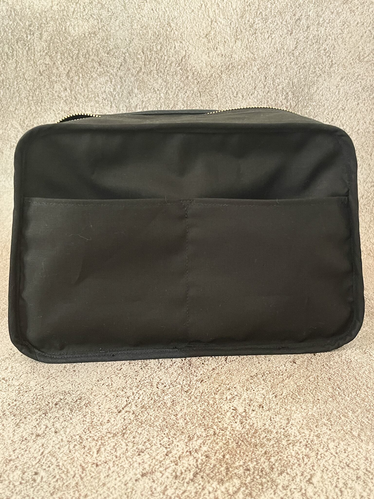 背面には大きめのスマホも入れられるポケット付き。内側にも2つポケットを設けています。