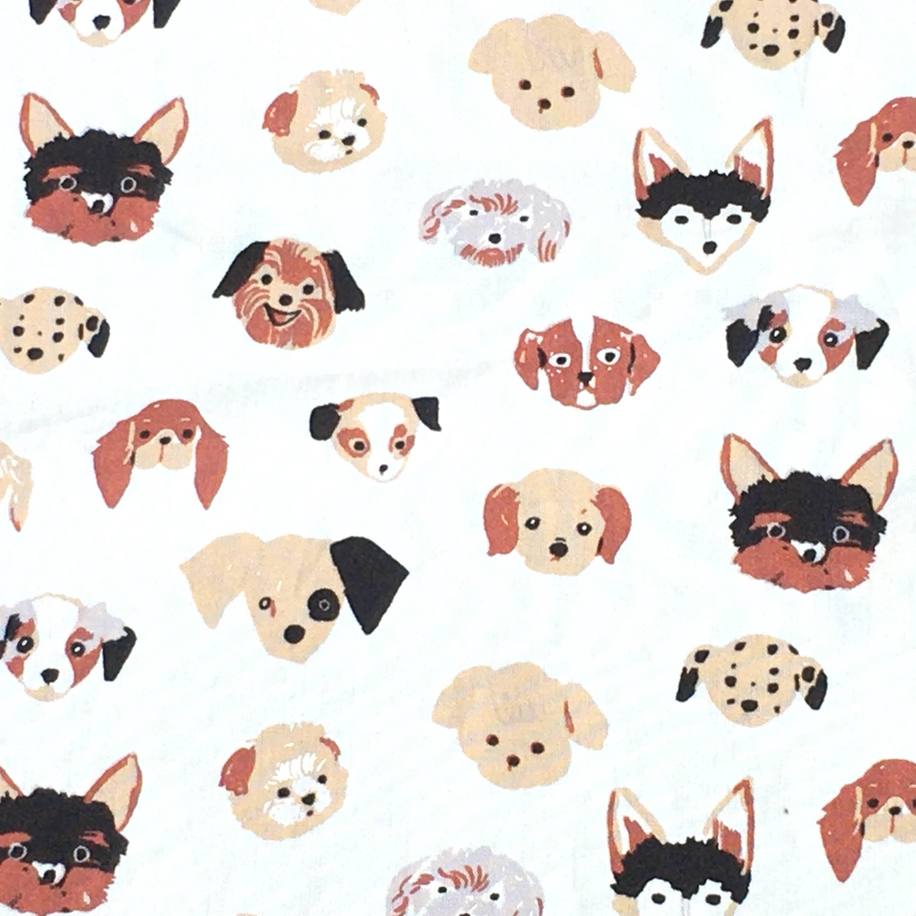 環境に優しいローインパクトダイを使用してプリントされた、オーガニックコットンの生地です。愛らしい犬たちがなんとも可愛いデザインです。